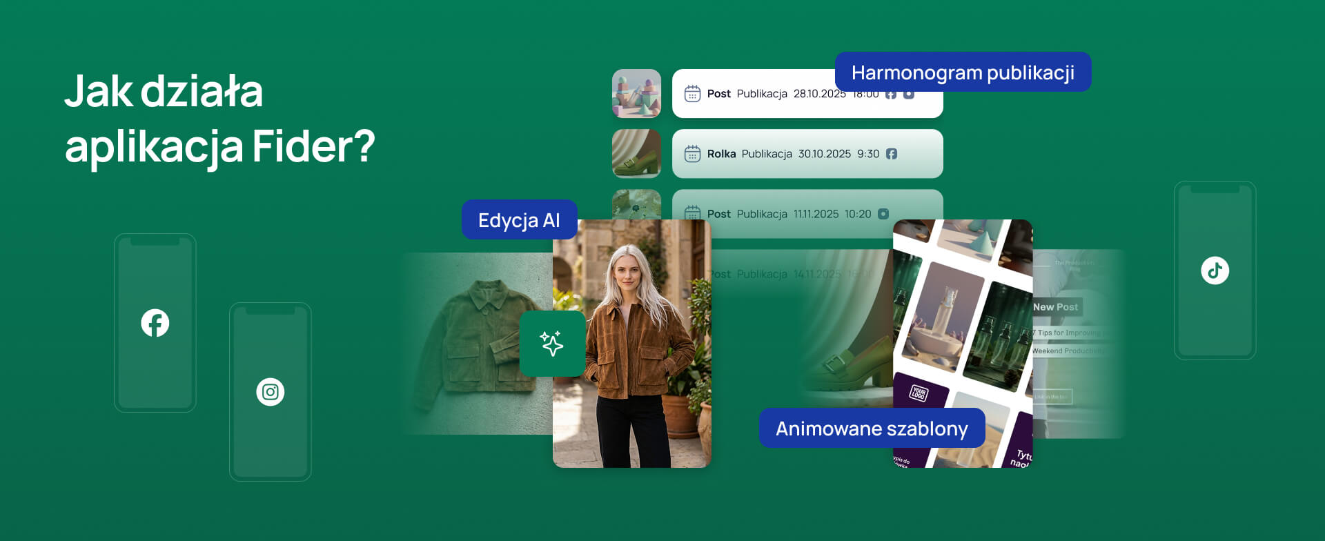 Fider łączy sztuczną inteligencję i automatyzację, by uprościć cały proces tworzenia treści. Od pomysłu, przez generowanie tekstów i obrazów, po gotowe animowane rolki i publikację — wszystko dzieje się w jednym miejscu, bez potrzeby korzystania z wielu narzędzi.